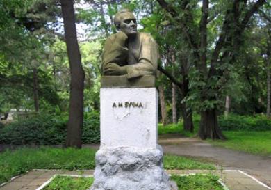 —Да, на территории Одесской киностудии художественных фильмов стоит памятник Амвросию Максимилиановичу. А дело было так. В год столетия со дня рождения великого актера Одесское отделение Союза кинематографистов Украины выступило с инициативой создать такой памятник, а директор киностудии Г. П. Збандут горячо поддержал эту идею и даже пообещал оплатить все расходы за счет киностудии. Работа была поручена скульпторам И. Елашвили и А. Соловьеву, которые перед этим отлично справились с другим заказом — созданием на студии памятника фронтовому оператору. Мастера получили из музея фотографии — кадры из фильмов, и работа закипела. По существовавшему тогда в советской Украине порядку установка любого памятника могла быть произведена только с «высочайшего соизволения», то есть решения Министерства культуры, утвержденного идеологическим отделом ЦК партии. Наша реляция, в которой объяснялось, кто такой Бучма и за что мы хотим поставить ему памятник, долго бродила по кабинетам, по всей иерархической лестнице обсуждений, согласований, мнений и соображений. А бюст тем временем был уже готов. И как раз к этому времени пришел, наконец, ответ из Киева: «не вважаєм за доцiльне», а это нужно было понимать как полный отказ. Такой ответ-запрет лишал директора студии оплатить скульпторам их труд, но эту проблему решили просто: пустили шапку по кругу. Тогда штат студии состоял из тысячи двухсот человек, и многие ветераны еще помнили всеми любимого актера, которого нежно называли «наш Бронек». Деньги были собраны, с авторами бюста рассчитались. А директор студии сказал: «Пусть меня из партии исключат, с работы снимут, но памятник будет стоять!»