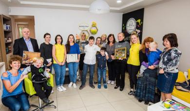 Первая акция «Солнечный день в KIDSCUT» прошла в детском салоне красоты, который пригласил к себе детей с синдромом Дауна. Помимо того, что гостей красиво подстригли, для них приготовили вкусные угощения и много игрушек.