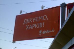 «Щиты с плакатами цвета футболки голландских фанов установлены вблизи бывшего оранж-кемпинга на Журавлевском водохранилище, на центральных улицах города – Сумской, Иванова, Мироносицкой, проспекте Ленина, – а также на Белгородском шоссе», – рассказал «Укринформу» директор рекламной компании Олег Сас.