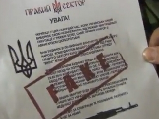 В частности, в листовках сказано: «Ваш дом был признан собственностью украинского народа. Комендантом от «Правого сектора» назначен Евгений Музыка… Всем жителям дома необходимо будет выделить 50% площади на нужды национальной революции». Также жителей домов попросили сделать запасные ключи и отдать их коменданту во время планового обхода.