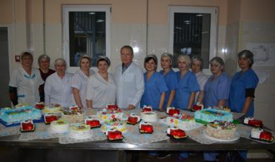 После того как в 2014 году на предприятии открылся современный евроцех, каталог продукции постоянно пополняется новыми видами изделий. Да еще и какими! Так, в этом году специально ко Дню Святого Николая выпустили торт в форме заветного сапожка — чем не подарок для маленьких сладкоежек?! Еще одна новинка — торты на бисквитно-кремовой основе, украшенные символом наступающего, 2017, года — Красного Петушка. На рисовую бумагу накладывается фотоизображение, и получается такой эффект.