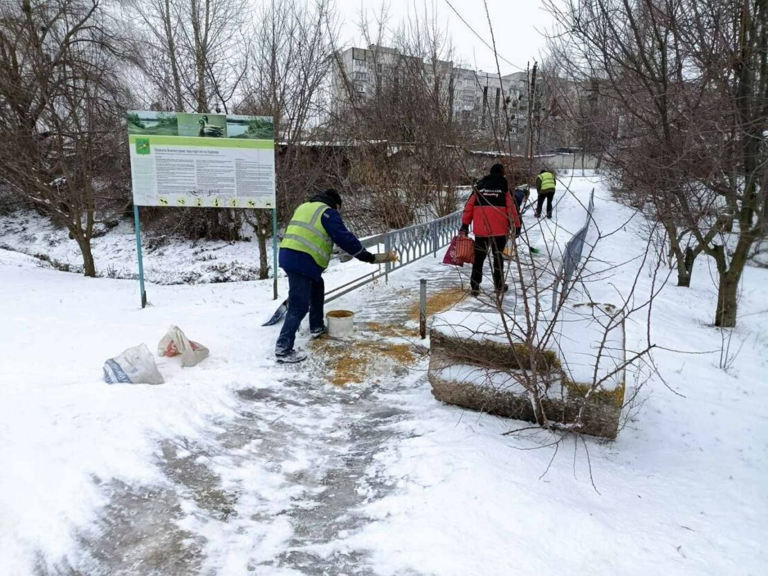 Комунальники також регулярно очищають від снігу та обробляють піщано-сольовою сумішшю пішохідні переходи, містки та сходинки в усіх районах Харкова.