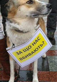 Акция прошла на Думской площади возле здания одесской мэрии, активисты принесли с cобой плакаты с лозунгами против жестокости и убийств собак и кошек.