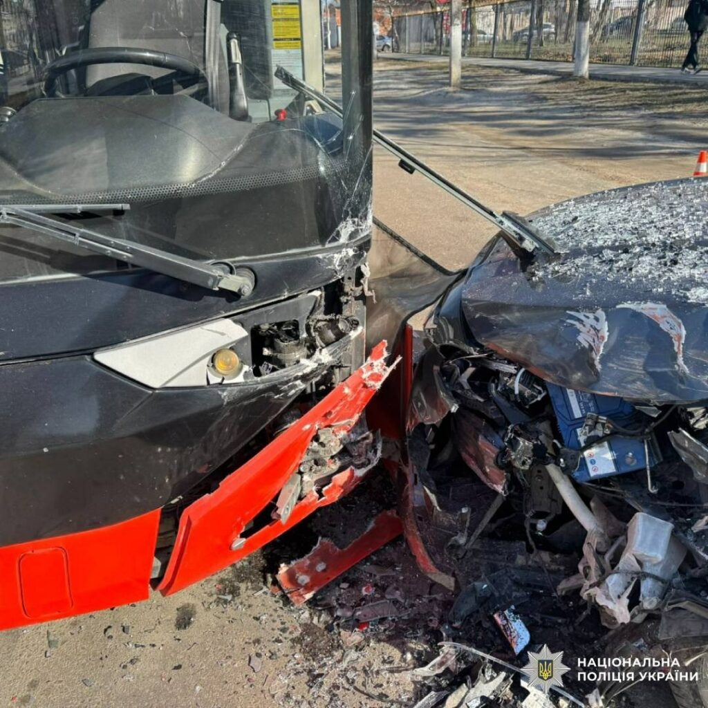 В результаті аварії тілесні ушкодження отримала водійка автомобіля. У водія та трьох пасажирів діагностовано гостру реакцію на стрес.