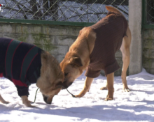 Мінус п’ятнадцять на термометрах. Хрумкий сніг під лапами. І — кольорові светри, що майорять посеред майданчика для вигулу. Ці песики