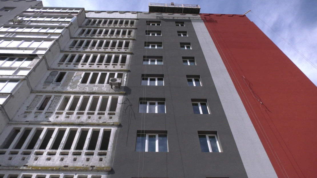 Йдеться про одну з багатоповерхівок на Північній Салтівці, яка зазнала значних руйнувань під час інтенсивних обстрілів. У той період будинок фактично спорожнів — через серйозні пошкодження конструкцій та внутрішніх мереж мешканці не мали змоги в ньому жити. Сьогодні ж триває процес відновлення. І вже зараз можна побачити, яким цей будинок стане після завершення робіт — сучасним, безпечним і придатним для життя.