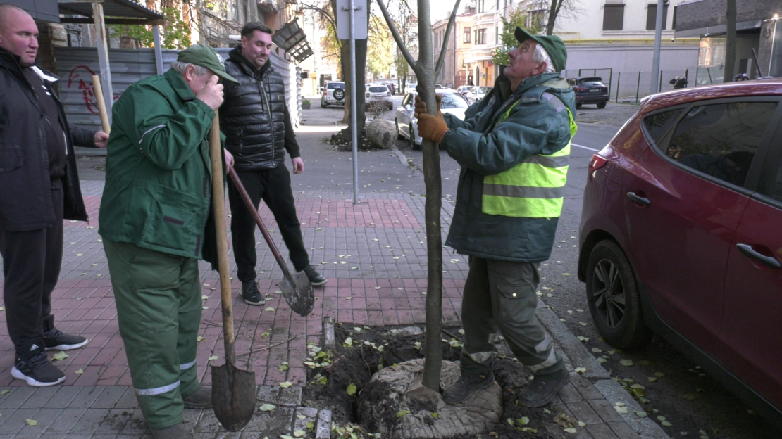 Прямо на очах у перехожих вздовж жвавих вулиць Київського району одне за одним з’являються нові дерева. «Завжди радіємо, коли місто стає зеленішим» — схвально кивають головами місцеві.
