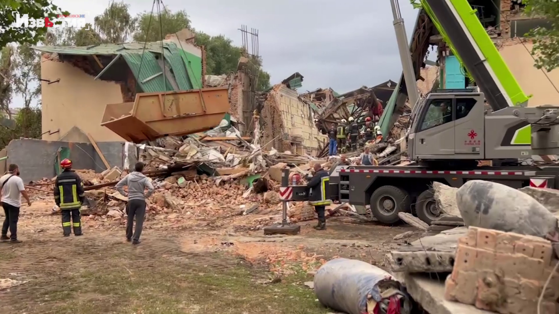 Більше 10 ракет вночі вдарили по Чугуєву. Вщент зруйновано районний будинок культури. Під завалами все ще шукають людей. Їх стан поки що не відомий. На місці з ночі працюють бригади рятувальників, спецтехніка. Волонтери організували підвоз їжі. До розгрібання уламків будівлі долучились місцеві мешканці. Всі сподіваються дістати людей живими. Наразі виконана велика частка робіт. Дістались лише рівня першого поверху.